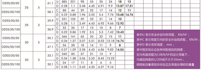 熱鍍鋅鋼格板格柵板承載力荷載、承重對照表